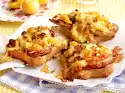 Separate eggs. Whisk egg yolks, salt and 150 ml milk. Add flour little by little and stir in 100 ml milk and chives. Beat the egg whites until stiff and carefully fold into the dough. Heat about half the lard in a coated pan (approx. 24 cm Ø). Pour in about half the dough. Bake at low heat for 4-5 minutes until golden brown. Quarter the sardines with a pallet, turn them over and bake from the other side until golden. Tear the dough into pieces with 2 forks. Remove and keep warm. Repeat the process