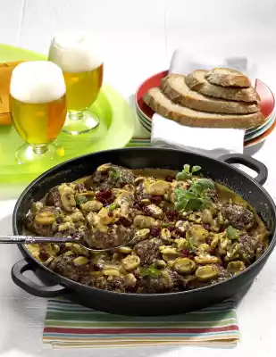 Remove from the oven, garnish with cranberries and marjoram. Country bread tastes good with it.