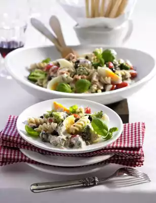 Boil the eggs hard for about 10 minutes. Cook pasta in boiling salted water according to package instructions. Clean and wash the broccoli and divide into small florets. Cook in boiling salted water for about 5 minutes, drain and drain.