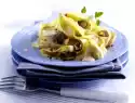 Cook the tortelloni in boiling salted water for 8-10 minutes. Clean the broccoli, cut into florets from the stalk and wash. Peel onion and garlic and cut into fine cubes. Heat the oil in a pot and fry the onion and garlic until transparent.