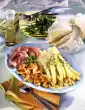 Fry the carrots in hot oil. Add about 6 tablespoons of water, honey and vinegar. Simmer for about 3 minutes. Steam spring onions briefly. Mix with noodles and corn, season. Let cool off
