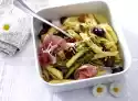 Clean and wash the broccoli and cut it into small florets. Cook the pasta in boiling salted water according to the instructions on the packet. Cook the broccoli for the last 5 minutes. Wash and halve the tomatoes.