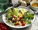 For the sauce, crumble the gorgonzola, puree with sour cream, juice of 1 lemon and lemon peel. Season to taste with salt and pepper. Mix all salad ingredients with the sauce. Cut half a lemon into slices, arrange salad on plates and garnish with the lemon slices.