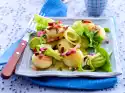 Mix vinegar with salt and pepper. Beat the rest of the oil into it. Pour the marinade over the salad and leave to stand for about 20 minutes. Season salad again and garnish with the remaining parsley