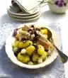 For the marinade, peel and finely dice the onion. Bring to the boil with 4-5 tablespoons of water, vinegar and stock. Season with salt and pepper