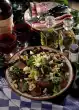 Season with salt, pepper and sugar. Fold in tuna, onion, olives and rocket. Arrange the tuna salad on a plate, sprinkle with parmesan slices.