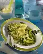 In the meantime melt fat and stir in flour. Add stock and milk slowly while stirring and bring sauce to the boil. Remove the pasta pan from the heat and keep warm. Add processed cheese to the sauce, season with salt and pepper and bring to the boil again. Wash parsley, dab dry and put 1 leaf aside for garnishing. Cut remaining leaves into strips and put them into the pan. Finally pour the sauce over the noodles and garnish with parsley.