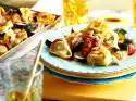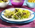 Cut half of the leaves into strips. Heat the oil, fry the remaining leaves for about 1 minute, remove and drain on kitchen paper. Fry cabanossi and zucchini in the hot oil for about 2 minutes. Add sage strips, garlic and onion, fry briefly. Add tomatoes, chop with a spoon. Add 200 ml water, bring to the boil, stir in the stock. Simmer for 5 minutes. Prepare pasta in boiling salted water according to package instructions. Drain the beans, let them drip off. Remove about 1/3 of the beans and puree finely, stir into the sauce. Season to taste with salt, sugar and pepper. Mix in the remaining beans.