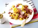 Meanwhile clean, wash, drain and roughly chop the rocket. Grate the Parmesan finely. Add jam and approx. 5 tbsp. water to the chicken fillets in the pan, bring to the boil and turn the fillets in the sauce.