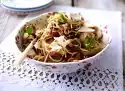 Roast the pine nuts in a pan without fat until golden brown and take them out. Wash the chicken fillets and pat them dry. Heat 2 tablespoons of oil in a frying pan and fry the fillets for 6-7 minutes on each side.