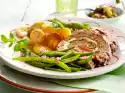 Take the meat out and keep it warm. Roast the prepared vegetables in the frying fat, deglaze with wine and season with salt and pepper. Place meat on top, cover roaster. Braise in the preheated oven (electric cooker: 175 °C/ circulating air: 150 °C/ gas: level 2) for about 2 hours.