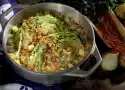 Finely chop the onion. Cut celery and paprika into small pieces. Heat the oil, sauté the tomato paste and paprika powder in it. Deglaze with 250 millilitres of water. Add the vegetables and bring to the boil briefly. Season with plenty of salt and pepper.
