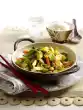Rinse the chickpeas and add them to the stock with the beans. Add peas and 750 millilitres of water and cook for another 15 minutes. Meanwhile cook the spaetzle for ten minutes in plenty of boiling salted water according to the instructions on the packet until firm to the bite. Season soup again and serve with the spaetzle. Serve garnished with celery green
