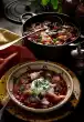 Wash the parsley and cut into fine strips, except for a few leaves for garnishing. Serve stew with meat and sausage. Serve sprinkled with parsley and garnished.