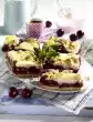 Separate eggs. Beat the egg whites with the whisks of the hand mixer until stiff, add 50 g sugar, 1 packet of vanillin sugar and salt. Continue beating until the sugar has dissolved. Stir in the egg yolks. Mix flour, baking powder and starch, sieve onto the egg mixture and fold in carefully. Line the bottom of a springform pan (26 cm Ø) with baking paper. Fill in sponge mixture and smooth it down.