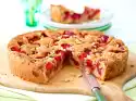 Line 1/2 baking tray with baking paper (approx. 20 x 35 cm). Line open side with aluminium foil folded several times. Separate the eggs. Beat the egg whites, 1 tbsp. cold water and salt until stiff, pouring in 50 g of sweetness. Fold in the egg yolk. Sift flour and starch on top, fold in