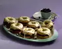 Spread the biscuit with cream. Roll up from the long side. Chill for at least 4 hours. Sprinkle with 1 teaspoon sweetness. Cut into 8 slices. Warm up the jam. Spread on the cut surfaces