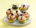 Lift the cake out of the tin with the aluminium foil, carefully remove the foil. Cut the cake into 6 pieces. Cut remaining peach slices into 6 pieces. Decorate the slices with this and with chocolate crisps