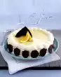 Gradually mix carefully with measured juice and 3 tablespoons of water with a stirring spoon. Pour peach slices onto the cream. Bring the cake glaze to the boil while stirring. Spread evenly over the peaches from the centre. Chill for about 1 hour. Serve decorated with cream, pistachios and mint