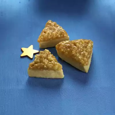 Bake in a preheated oven (electric oven: 175 °C/ convection oven: 150 °C/ gas: level 2) for 10-12 minutes. Brush triangles with the nut mixture and bake for another 5 minutes. Remove cookies from the oven and let them cool down.