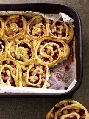 Knead dough briefly. Roll out to a rectangle (approx. 30 x 35 cm) on a floured work surface. Spread compote on top. Roll up from the long side. Cut into about 15 slices. Place on a baking tray (29 x 42 x 4 cm) lined with baking paper, cover and leave to rise for about 15 minutes. Bake in a preheated oven (electric cooker: 200 °C/ convection oven: 175 °C/ gas: level 3) for about 20 minutes. Remove and let cool off. Dust with icing sugar as desired