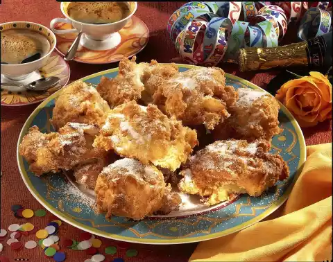 Cut into small cubes. Beat egg whites until stiff. Fold the beaten egg whites and pears into the dough. Heat the fat in a large saucepan. Use 2 tablespoons to cut off some of the dough and fry in hot fat until golden brown.
