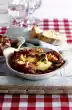 Put flour and salt in a mixing bowl and make a depression in the middle. Mix milk and 1/8 litre water, pour into the hollow and whisk to a smooth dough. Separate 2 eggs.