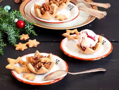 Spread the filling into the star-shaped bowls. Decorate with the rest of the nut halves. Amarena ice cream tastes good with it.