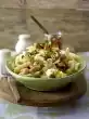 Wash the sprouts and let them drip off. Grate cheese. Deglaze asparagus-tomato mixture with vinegar, bring to the boil briefly, place in a bowl with pasta and bread cubes, mix, allow to cool slightly