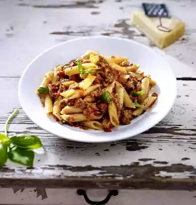 Cook the pasta in boiling salted water according to the instructions on the packet. Heat the oil in a frying pan. Fry the vegetable mix for approx. 5 minutes while turning until crumbly. Add tomatoes, season with salt and pepper. Simmer the sauce for about 5 minutes