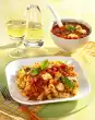 Peel garlic and press it through a garlic press. Roast pine nuts in a pan without fat and take them out. Put olive oil in the hot pan, add garlic, sheep's cheese, rocket and olives and braise briefly. Add drained pasta and pine nuts and season with pepper. Divide into 4 plates, sprinkle with remaining small rocket leaves and serve immediately