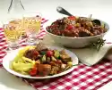 Take out and drain on kitchen paper. Add olive oil to the pan and heat. Fry the onion strips and garlic in it. Deglaze with vegetable stock. Add mascarpone and stir until smooth.