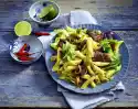 Prepare the pasta in boiling salted water according to the instructions on the packet. Clean, clean and slice the mushrooms. Wash the basil and cut half of the leaves into strips.