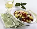 Clean, wash and dice the aubergine and sprinkle with salt. Peel and finely dice the onion and garlic. Clean, wash and dice the zucchini. Rinse and drain the aubergine. Chop the tomatoes in the tin with a long knife.