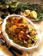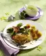 Wash the meat, dab dry. Heat 1 teaspoon of oil in a coated pan. Fry the escalopes in it for 3-4 minutes on each side. Season with salt and pepper and remove. Add the leek to the turnip and stew everything else for another 5 minutes. Wash and chop the parsley. Sauté the rest of the onion in the frying fat.
