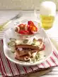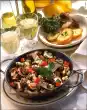 Cut the potatoes into slices. Add to the leek and heat. Season to taste with salt and pepper. Arrange everything and garnish with rest of marjoram