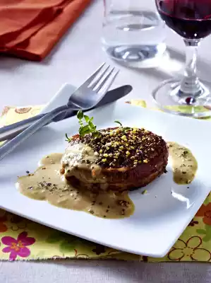 Put butter into the pan, melt, deglaze with cognac, cream and stock, bring to the boil, simmer for about 2 minutes. Stir in the sauce thickener and let it simmer for about 1 minute while stirring. Season to taste with salt and sugar.
