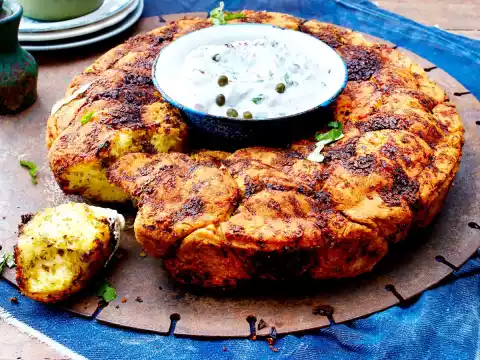 Take out Monkey Bread and let it cool down for about 30 minutes. Carefully remove from the mould. Serve lukewarm or cold with herb quark.