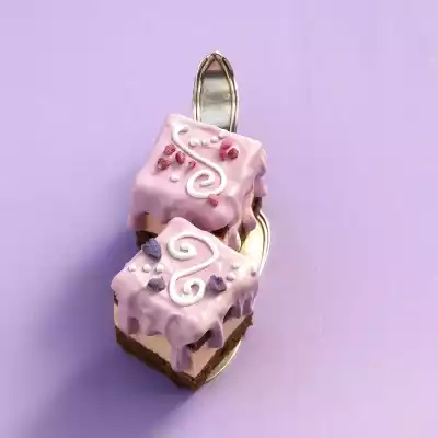 Finally, stir in 5 tablespoons of grenadine. Cut the cooled base in half, cut the edges smooth. Place a cake frame around one half. Spread the butter cream on the cake base. Carefully place the other half of the cake base on top and press down gently. Chill the cake for at least 1 hour. Remove the cake from the frame and cut into cubes (approx. 4 x 4 cm). Sift icing sugar into a bowl. Mix the icing sugar and lemon juice with the whisk of the hand mixer to a viscous icing. Remove 2 tablespoons. Stir 4 tablespoons of grenadine and some blue food colouring into the remaining icing and cover Petit Fours with it. Put the white icing in a piping bag and spray small ornaments or patterns on the petit fours and decorate with dried violets or rose petals. Refrigerate the Petit Fours for another 30 minutes