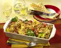 Heat the fat in a frying pan and fry the onions in it until transparent. Wash the remaining herbs and chop finely. Peel and crush the remaining garlic. Add herbs, garlic and mustard to the onions. Add white wine and mix. Season to taste with salt and pepper. Keep onion vegetables warm. Remove the meat from the marinade and wipe off the oil. Season belly slices with salt. Heat clarified butter and fry meat on both sides until crispy. Arrange meat and onion vegetables on a plate.
