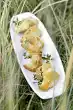 Wash herbs, shake dry. Pluck leaves from the stems and chop them. Peel onion and cut into rings. Peel garlic and chop finely.