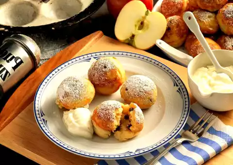 Heat a pies mould, spread a little fat on each cavity and fill it to 3/4 with the dough. Bake the dough until it is lightly brown and turn it carefully with the help of two forks. Bake from the other side until golden brown.