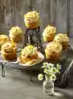Place on a baking tray lined with baking paper. Bake in a preheated oven (electric cooker: 175 °C/ convection oven: 150 °C/ gas: see manufacturer) for 15-20 minutes. Remove the chicks and let them cool down. Put cloves as eyes and flaked almonds as beaks on the chicks and arrange on a plate with Easter grass