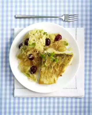 Wash and sort the grapes. Peel and finely dice the shallot. Heat 1 tsp. oil in a pot. Sauté the shallot in it. Add sauerkraut, bay leaf, grapes and wine, cover and stew for 10-15 minutes. Season to taste with salt, pepper and a little sugar