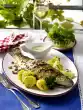 Drain the potatoes and celery. Add milk and butter and crush everything finely. Season to taste with salt and nutmeg. Keep warm.