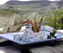 Bring 3-4 l salted water (1 teaspoon salt per litre) to the boil. Wash the thyme, shake dry and pluck the leaves. Finely chop 1 clove of garlic. Rinse fish and pat dry. Cut the skin several times with a sharp knife, then cut the fish into 8 pieces.