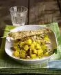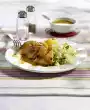 Cut the rest of the lime into slices. Arrange everything and garnish with lime. Serve with rice. Drink: mineral water.