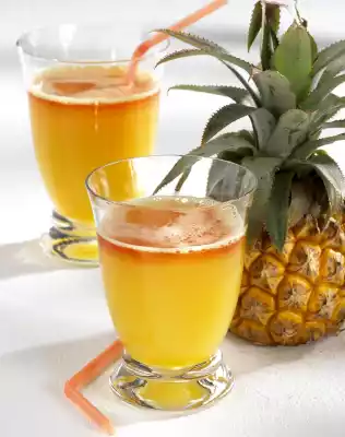 Mix 200 ml orange juice and grenadine and freeze into ice cubes. Purée the rest of the orange juice, pineapple juice and honey in a blender. Serve with the ice cubes