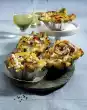 Squeeze the gelatine, dissolve at low heat. Stir in 4 tablespoons of cream cheese mixture, mix with the remaining cream cheese mixture and halve. Divide 1 half. Drain the peppers and cut them into very small cubes. Mix with Ajvar and 1/4 of the cream cheese mixture, season with salt and pepper. Spread on the pumpernickel base, smooth it down and put it in a cool place for about 30 minutes. Mix pesto and 1/4 of the cream cheese mixture, season with salt, spread on the red cheese mixture and smooth it down. Chill for about 30 minutes. Drain the olives. Season half of the cream cheese mixture with salt. Spread a thin layer on the green cheese.