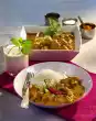 Grease small moulds (150 ml content) with the bacon fat. Spread the egg mixture evenly. Let it simmer in a preheated oven (electric cooker: 175 °C/ convection oven: 150 °C/ gas: level 2) for 17-20 minutes. After 10 minutes, stir the mixture at small intervals (push together). Serve with the bacon